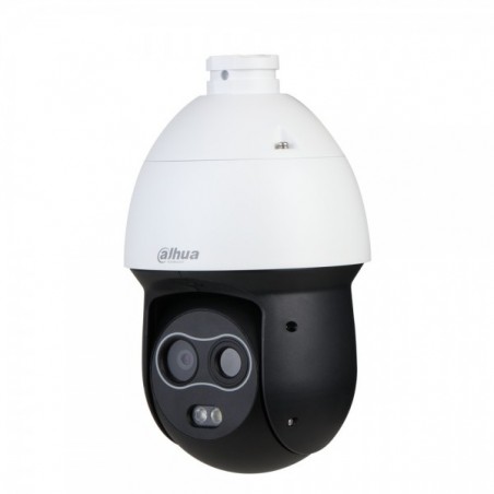 Dome motorizzato termico IP/HDCVI/analogico di 200à/sec. per esterno. Camera termica con risoluzione 256 x 192, lente di 7 mm. Rilevamento di persone fino a 292 metri e di veicoli fino a 778 metri. Autotracking e rilevamento intelligente - (IVS). Uscita di video ANALOGICA/HDCVI. 300 presets DH-SD/Pelco-P/D. 1 entrata / 1 uscita audio. 2 entrate / 1 uscita di allarme. Porta RS485. Slot MicroSD. Onvif, PSIA, CGI. IP66. 12V DC. PoE+.