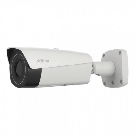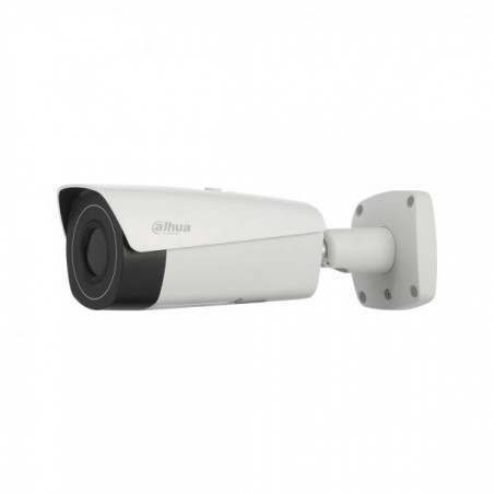 Camera bullet termica IP. Risoluzione 400 x 300. Lente 25à mm (15,5à x 11,6à). Rilevazione di persone di 735 metri e di veicoli di fino a 1961 metri. Uscita di video CVBS/BNC. AGC, 3D-DNR, 4 zone ROI, videosensore e privacy mask. Analisi intelligente di video (IVS). Misuramento della temperatura. 1 entrata / 1 uscita audio. 2 entrate / 2 uscita di allarme. RS485. IP67. Lightning-proof 6KV. 12V CC. PoE.