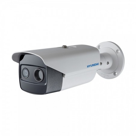 Camera bullet termica + visibile HYUNDAI NEXTGEN serie Thermal-Line con illuminazione IR da 40 m, per esterno. Camera visibile con CMOS 1/2,8 da 2 megapixels. Ottica visibile 8 mm. Camara termica con risoluzione 384 x 288, lente termica da 15 mm. Rilevazione di persone fino a 441 metri e veicoli di fino a 1353 metri. WDR digital, 3D-DNR. Rilevazione (VCA). Uscita di video IP/ANALOGICA. 1 entrata / 1 Uscita audio. 2 entrate / 2 uscite di allarme. Slot MicroSD. Onvif, API, ISAPI. Lightning-proof 6KV. IP66. 24V CA, 12V CC. PoE+.