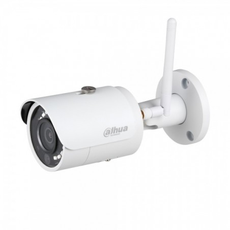 Telecamera bullet IP WiFI Dahua con Smart IR di 30 m per esterno. CMOS 1 / 2,7 "da 2 MP. Doppio flusso. Formato H.265 / H.264 / MJPEG. Risoluzione 1080P a 25 ips. Filtro ICR. 0,1195 lux F2,0. Ottica fissa da 2,8 mm (106 à). OSD, AWB, AGC, BLC, HLC, digital WDR, 3D-DNR, 4 zone ROI, specchio, sensore video e maschere privacy. Slot per microSD. Onvif, CGI. IP67. 2AXIS. 12V DC