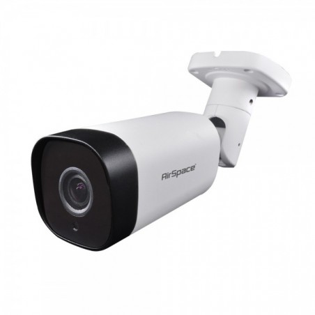 Camera bullet IP AirSpace con Smart IR da 20 m per esterno. Formato H.265/H.264. CMOS 1/2,7"" da 5 megapixels. Risoluzione di fino a 5MP@10 ips. Triple StreAmplificatore Ottica fissa di 2,8 mm. Filtro ICR. OSD, AWB, AGC, WDR digital, 2D/3D-DNR, 4 zone ROI, videosensore e privacy mask. 1 entrata / 1 Uscita audio. Onvif. IP67. 12V CC. PoE. Pulsante di reset.