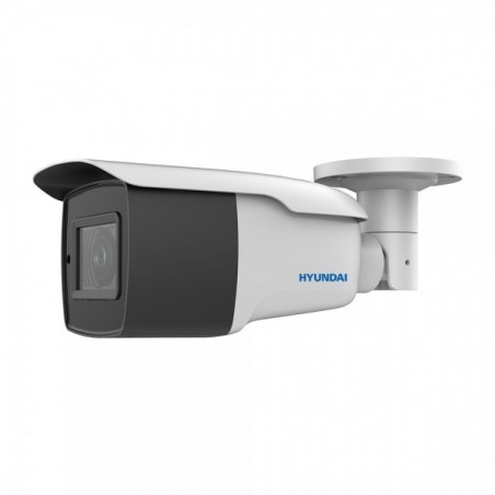 Camera bullet 4 in 1 HYUNDAI NEXT serie GEN PRO con Smart IR da 80 m per esterni. CMOS da 5 MP. Risoluzione 5MP @ 20ips Uscita video 4 in 1 commutabile. Ottica motorizzata da 2,7 ~ 13,5 mm (92,3 ~ 29,3 à) con autofocus. Filtro ICR AWB, AGC, BLC, WDR 130dB, 3D-DNR, sensore video e maschere per la privacy. IP67. 3AXIS. 12V DC, 24V AC.