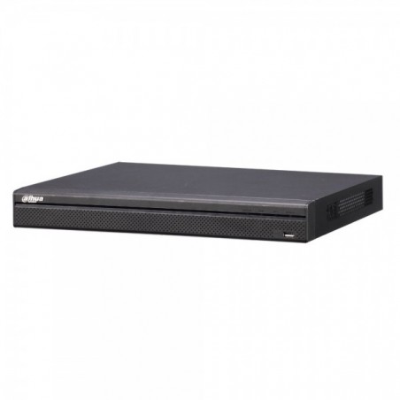 NVR IP da 16 canali 4K/8MP. H.265/H.264/MJPEG/MPEG4. Audio bidirezionalel. Riproduce tutti i canali insieme. 12MP, 4K/8MP, 6MP, 5MP, 4MP, 3MP, 1080P, 720P, etc. 320 Mbps. Uscite HDMI (4K) e VGA (1080P). 4 entrate / 2 uscite allarme. SMARTPSS, IDMSS e P2P. Capacità da 2 HDD SATA. RJ45 Gigabit. 1 USB 2.0 + 1 USB 3.0, 1 RS232. 12V CC. 1U.