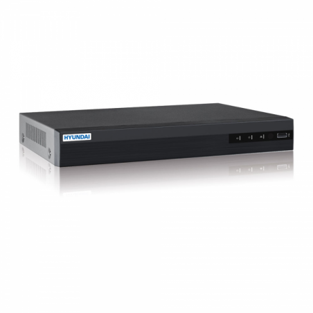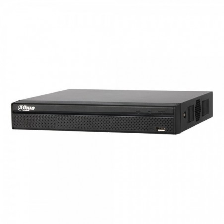 NVR IP da 16 canali 4K/8MP. H.265/H.264. Riproduzione in tempo reale di fino a 4 canali 1080P o 1 canale 4K/8MP. Registrazione 4K/8MP, 6MP, 5MP, 4MP, 3MP, 1080P, 720P, D1. 80 Mbps. Uscite HDMI e VGA (1080P). Audio bidirezionale. Capacità di 1 HDD SATA. RJ45 Gigabit. 2 USB 2.0. 12V CC. Da tavolo.